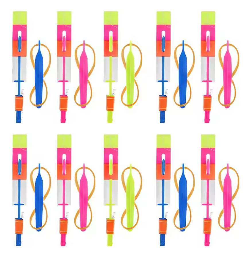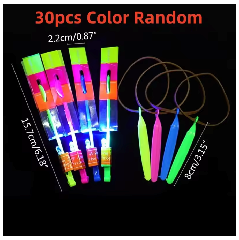 🚀✨ Light Up Rocket Helicopters Toys - Blast off into a world of excitement with our amazing set of glow rocket helicopters! Each pack includes 30 launchers and 30 dazzling rocket helicopters with LED lights, totaling to 60 pieces of pure fun. Batteries are included, making these toys ready for daytime and nighttime adventures, perfect for kids aged 4-14!