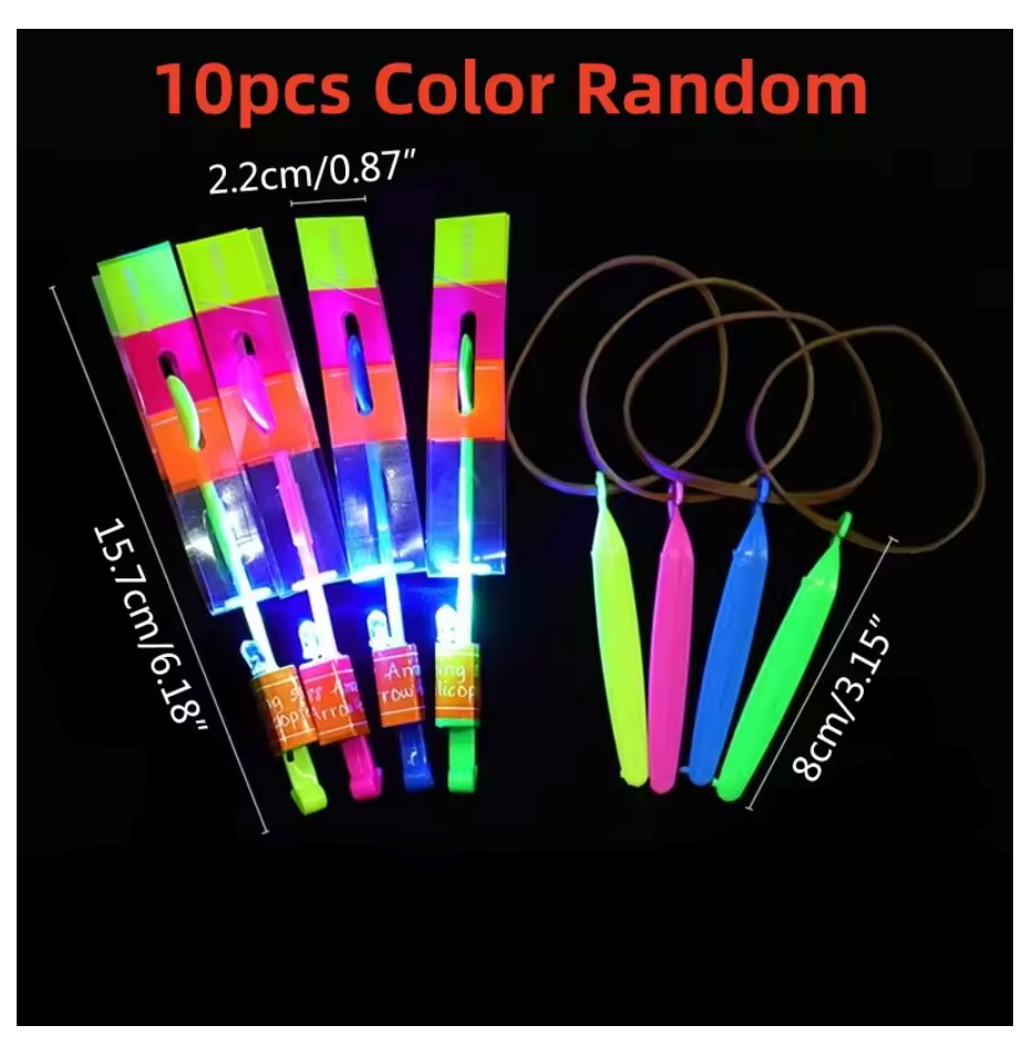 🎉🌟 Flying Toys & Outdoor Fun - Watch in amazement as the rocket helicopters soar up to 150-200 feet in the air! The mesmerizing lights and constant rotation make them a must-have for outdoor play. Whether at a campsite or in the backyard, these helicopters will light up the night and keep the fun going!